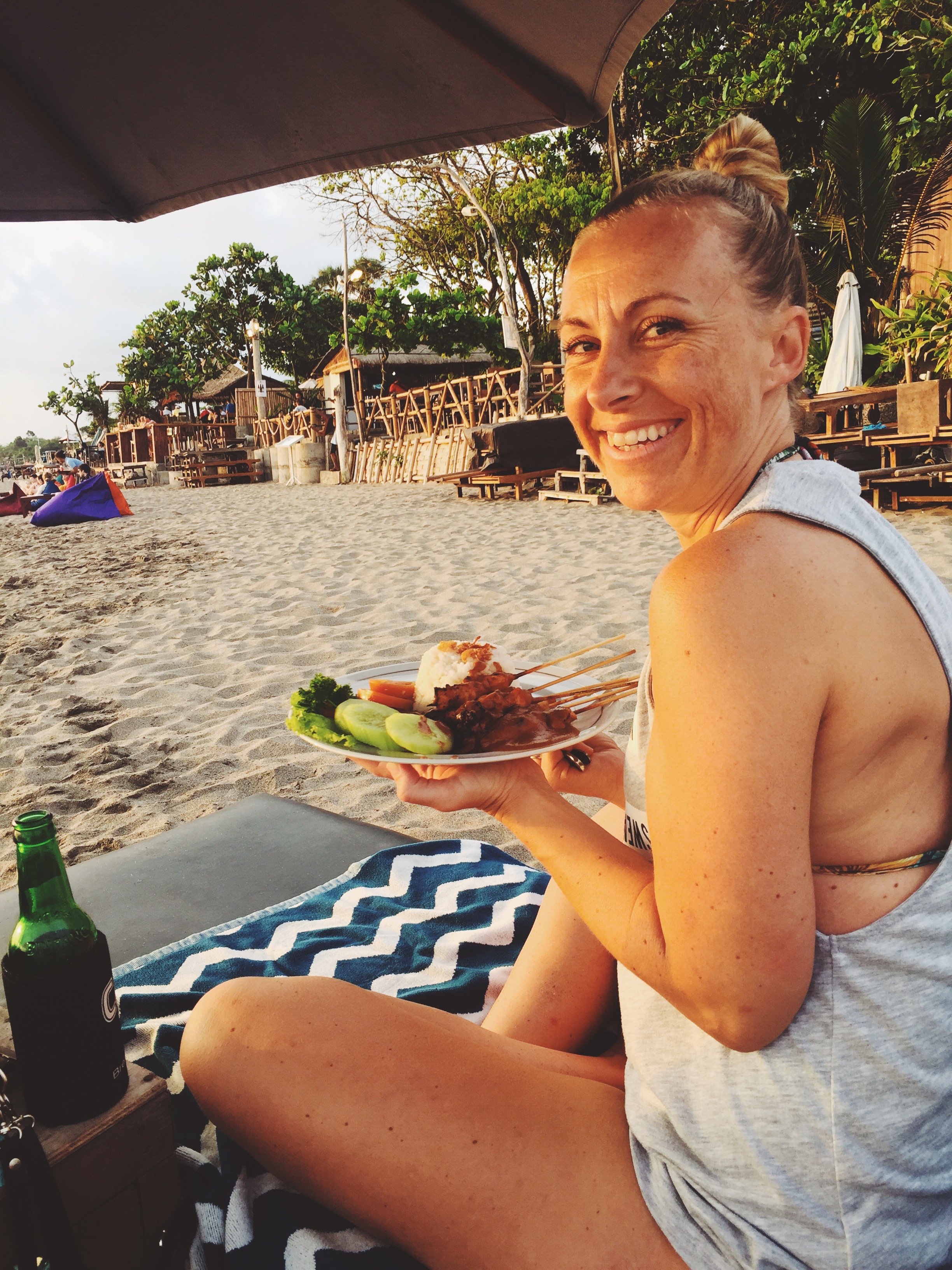 Om het onszelf gemakkelijk te maken, zijn we na de wandeling op strand wat wezen eten. De sateetjes smaakten goed en voor nog geen €9,- heb je hier samen gegeten en gedronken. We leven hier als goden op Bali ?.