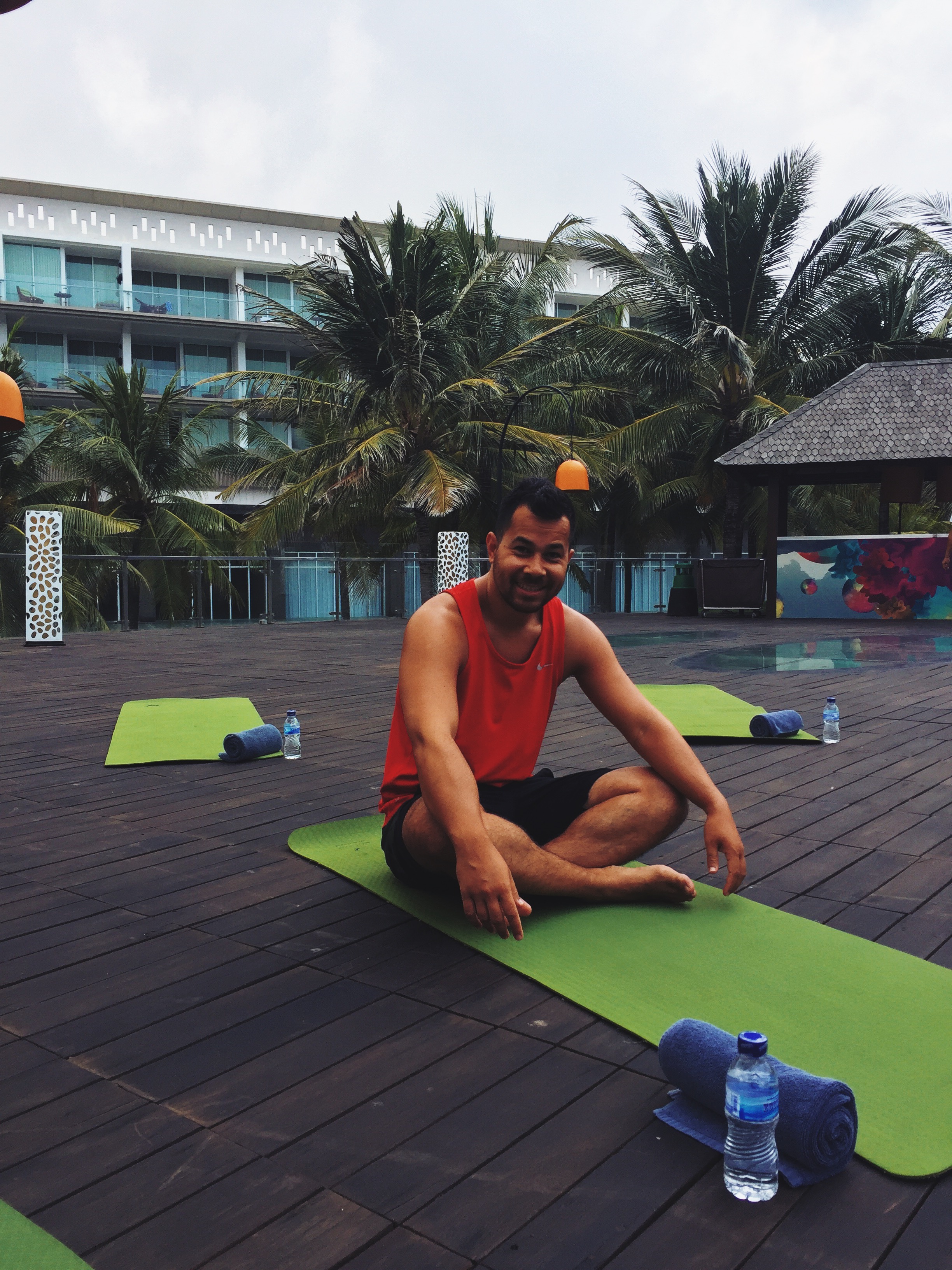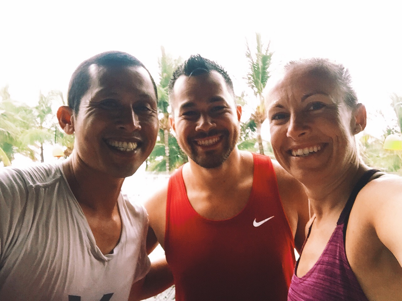Van het ontspannende karakter waar wij bij yoga aan dachten, naar een best wel inspannende workout (terwijl wij best wel wat gewend zijn met onze trainingen). Halverwege de les vonden de weergoden het waarschijnlijk niet om aan te zien, want het begon ineens keihard te regenen. Er zou een alternatieve locatie binnen zijn, maar iedereen vond het eigenlijk wel lekker in die lauwwarme regen. Dus we gingen gewoon vrolijk verder met hier en daar een uitglijder op het natte matje.