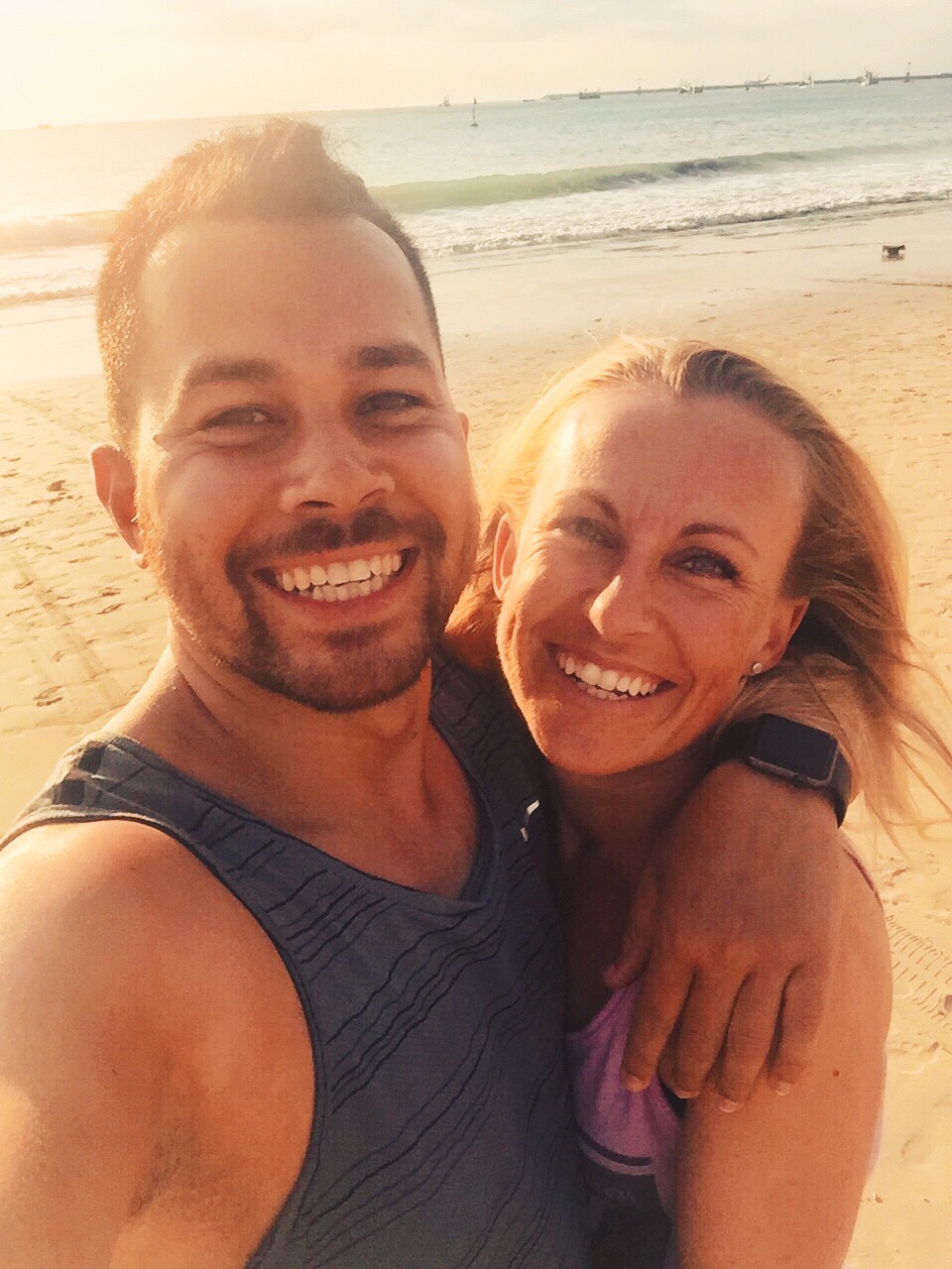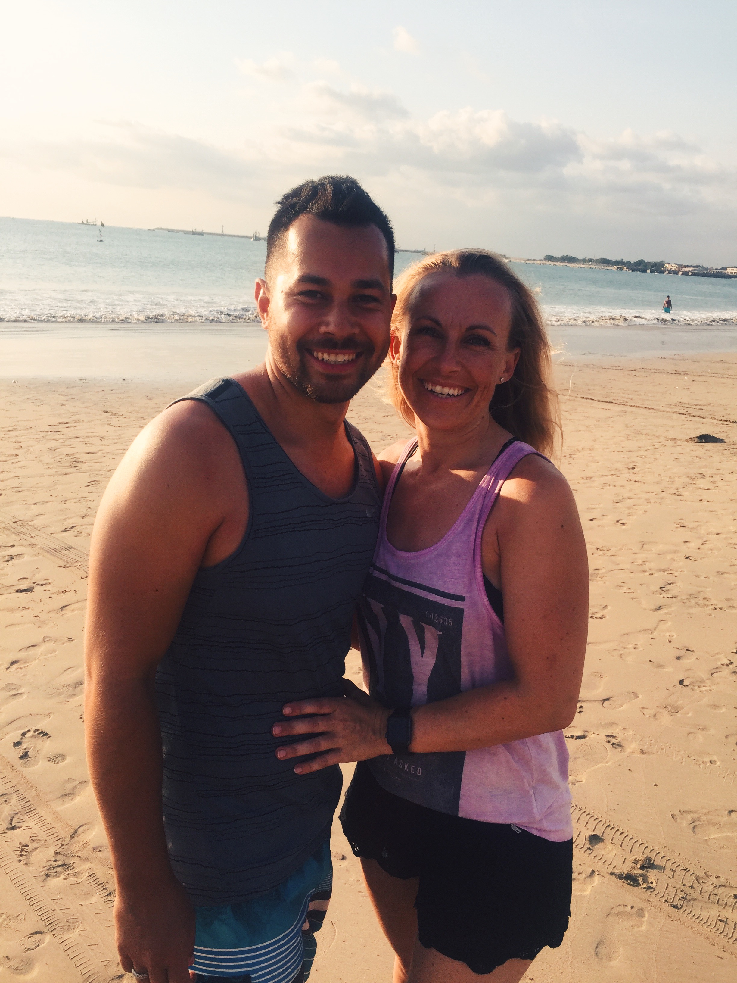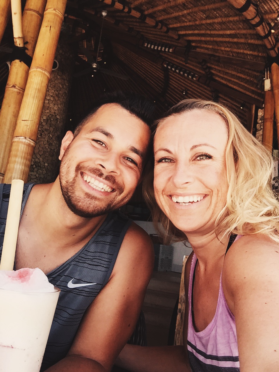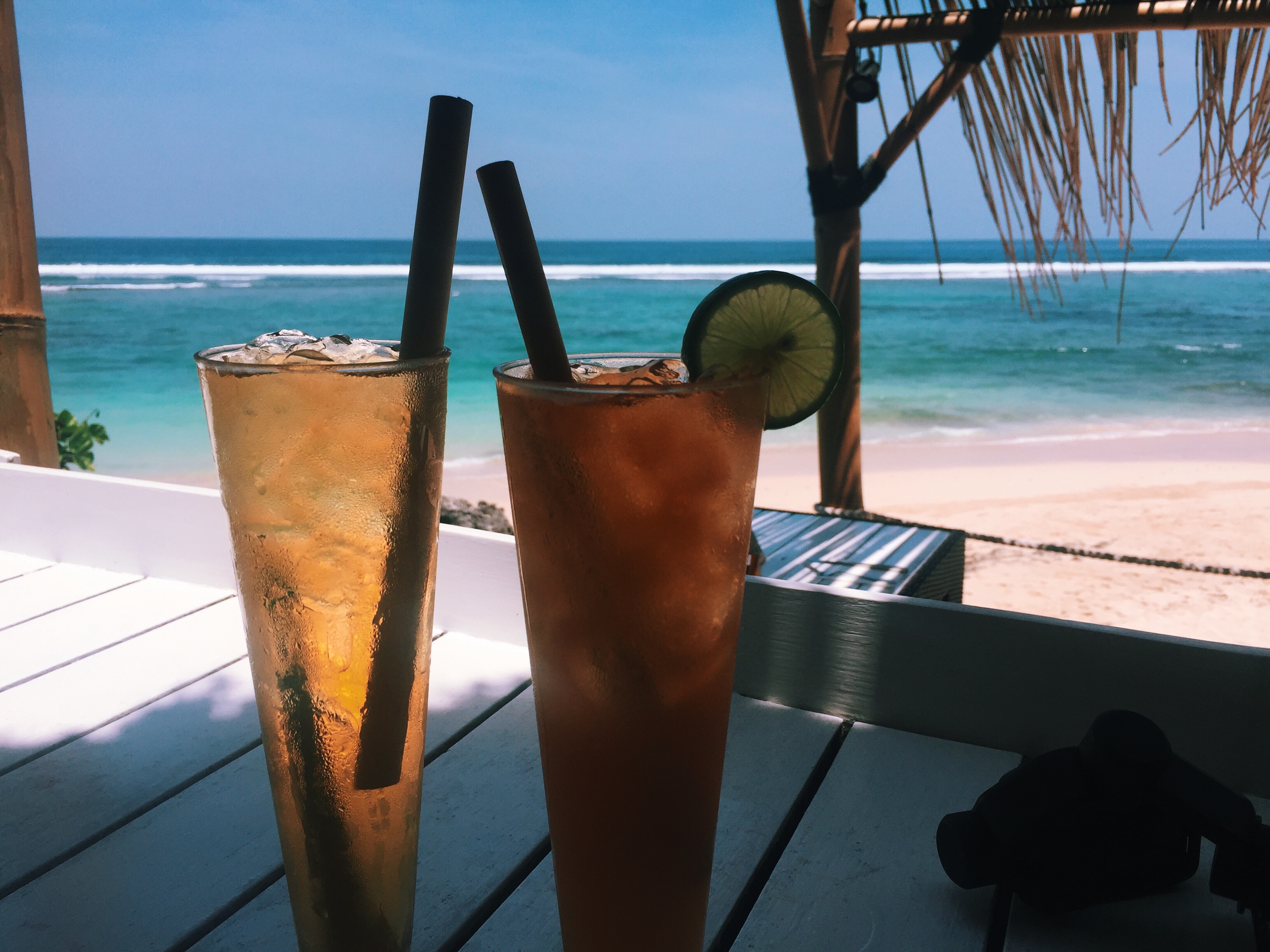Omdat het hier rond 18:30 donker is, hebben we onze weg richting Seminyak vervolgd en zijn we nog op een aantal plekken gestopt voor een fotomomentje. Padang Padang Beach hebben we van bovenaf aanschouwd (ook dit strand lag onderaan een klif en was via een lange trap te bereiken), Jimbaran Beach zijn we wel even opgelopen en hebben we geprobeerd wat gekke actieve foto’s te maken (na poging 25 en veel lol is het uiteindelijk gelukt ?), waarna we door de scooterende drukte terug naar huis zijn gereden. Na een verfrissende plons in ons zwembad (alle smog maakt je behoorlijk smerig) hebben we ons klaar gemaakt voor het diner aan het strand. Met een ijskoude Bintang Radler en een sateetje hebben we deze roadtrip afgesloten.