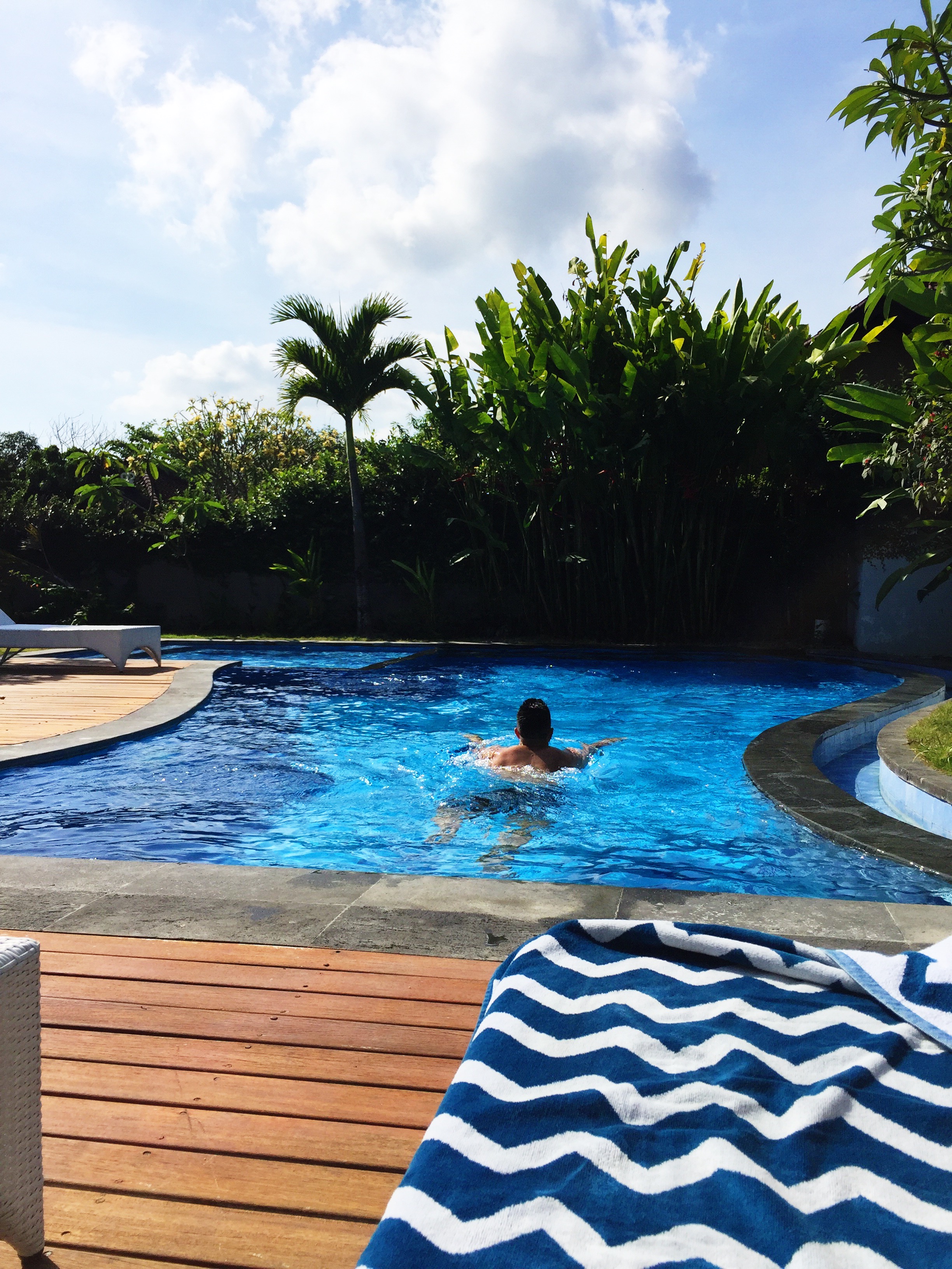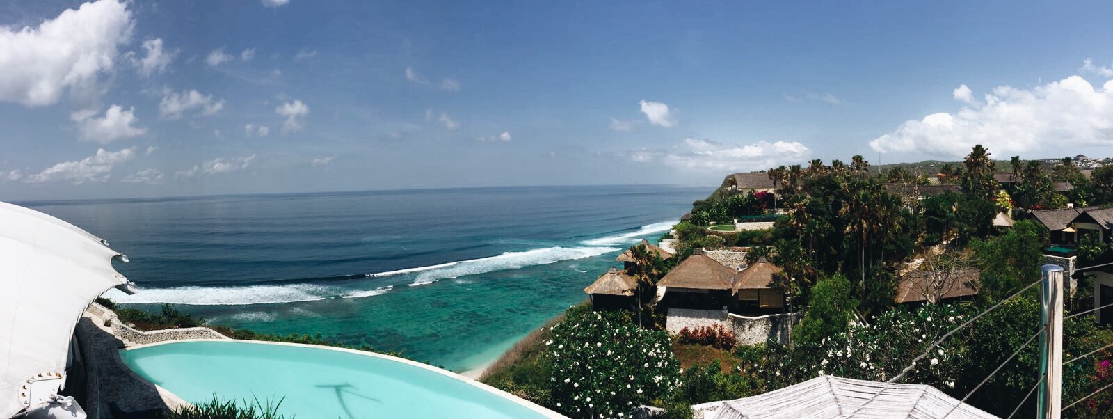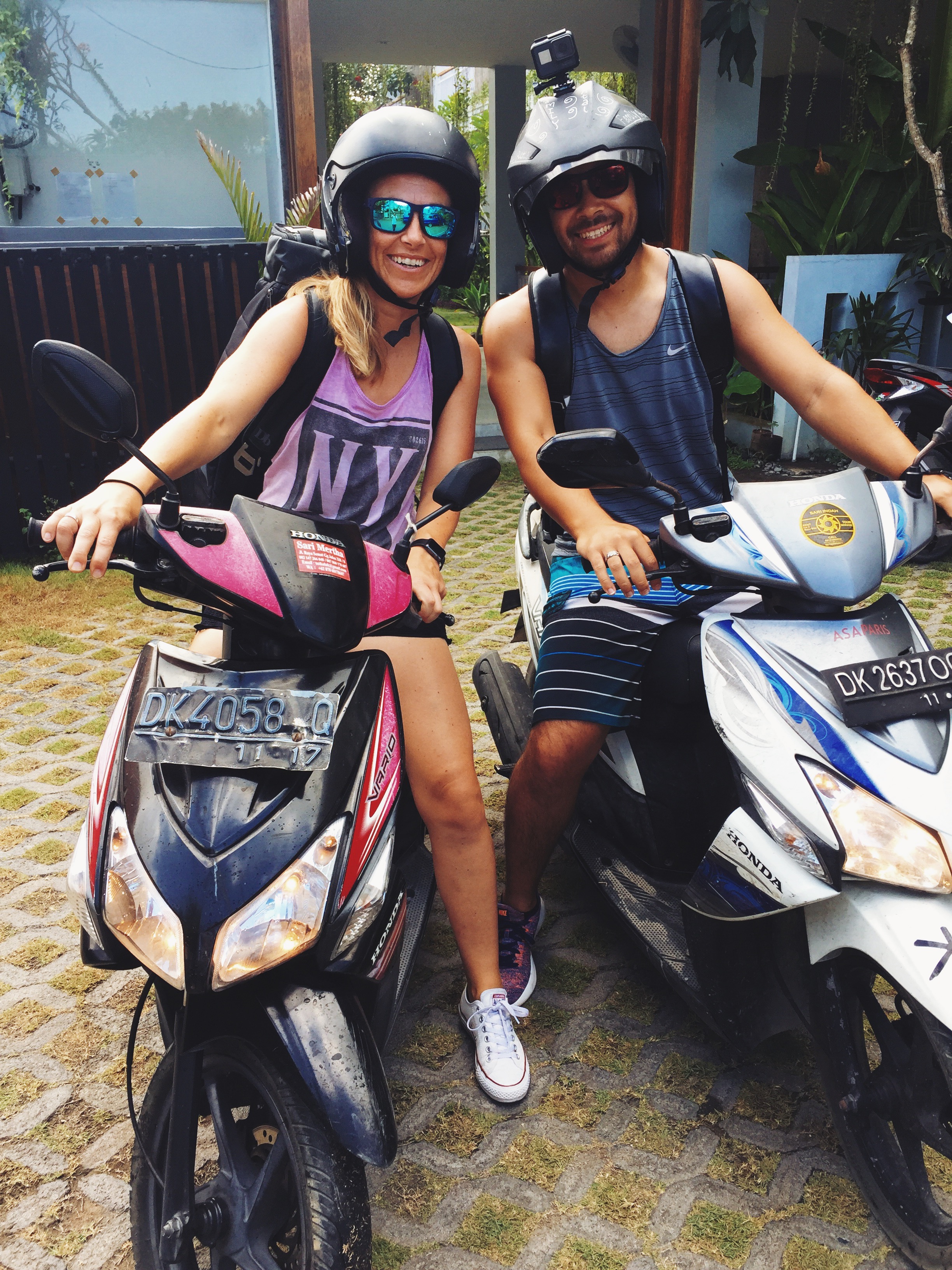 Na deze heerlijke relaxdagen hadden we zin om op ontdekkingstocht te gaan en weer een stukje eiland te bewonderen dat we nog niet gezien hadden. Via het hotel hadden we 2 scooters geregeld (zelf rijden is véél leuker ?) en met een globaal uitgestippelde route, bepakt met strandlakens en onze snorkelmaskers, zijn we van Seminyak naar het meest zuidelijke puntje van Bali (Karma Beach) gesjeesd. Tot het vliegveld een behoorlijk hectische route, maar daarna kwamen de leuke slingerweggetjes met prachtige uitzichten.