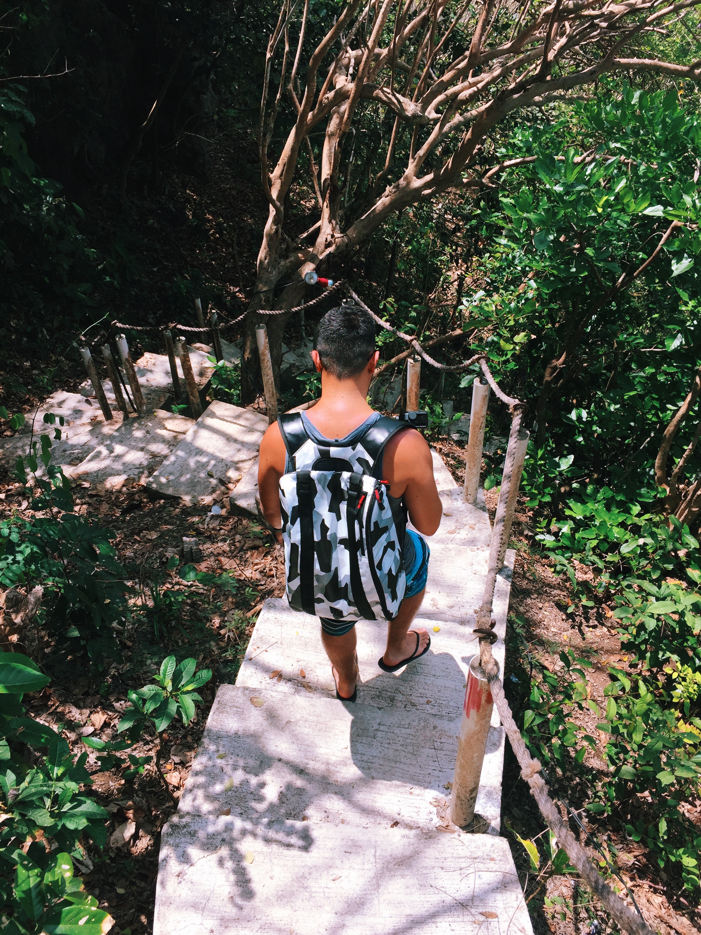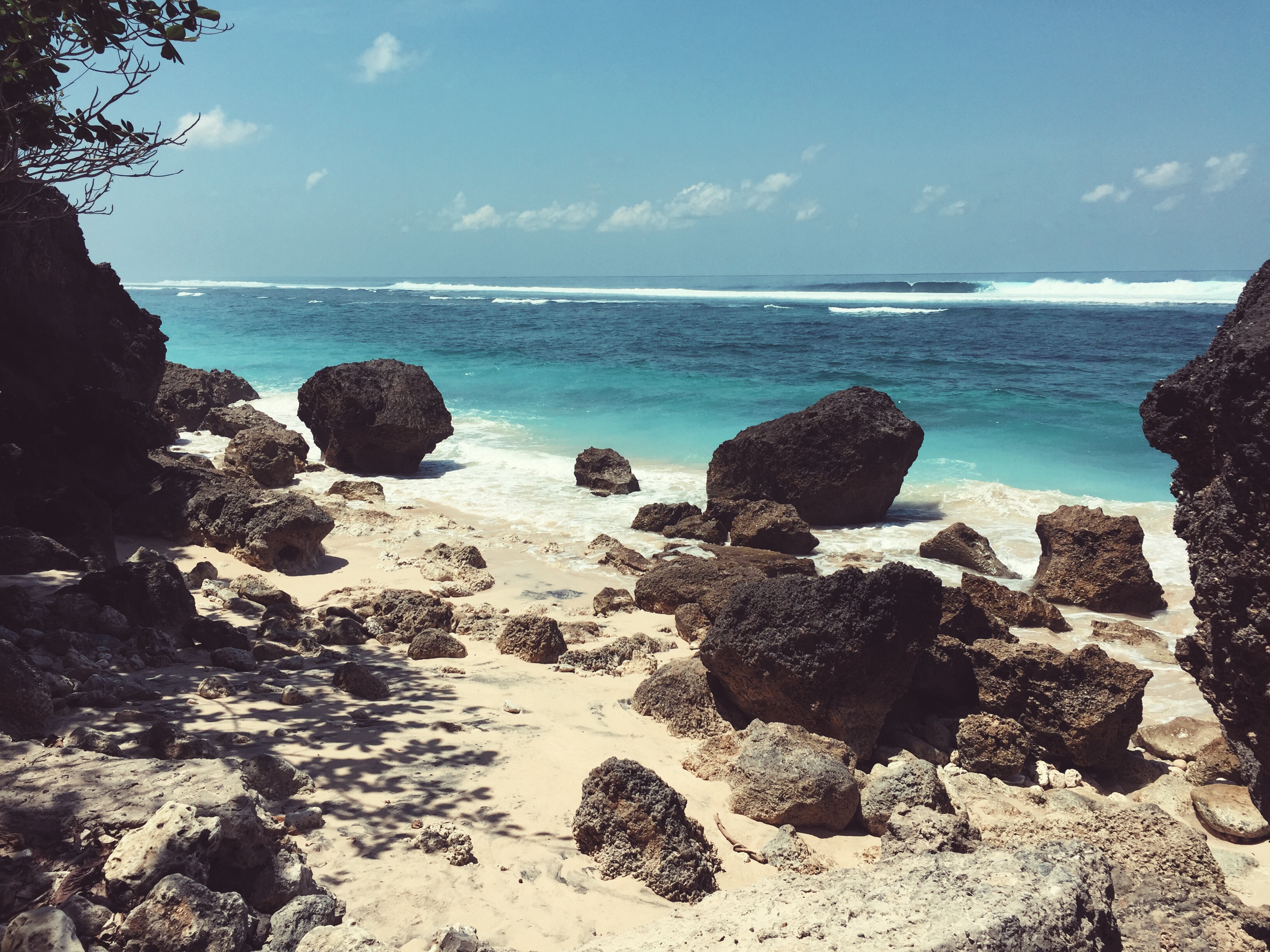 Bij Karma Beach zou je met een gondeltje van bovenaan de klif naar het strand beneden gebracht kunnen worden, maar wij hebben de sportieve route gepakt en zijn met de benenwagen de lange trap af gegaan. Halverwege de route word je al beloond met prachtige uitzichten, maar eenmaal beneden is het paradijselijk! De turquoise zee en het witte zandstrand maken de afdaling absoluut de moeite waard. Na een heerlijke lunch bij de beachclub, waar overigens alleen maar überhippe mensen ronddartelen met de ‘kijk-mij-eens-mooi-zijn’ look, hebben we ons geïnstalleerd op een wat rustiger stukje strand. Handdoekje neergelegd, snorkelmasker op en hup het turquoise water in.